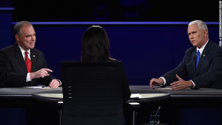 辩论开场仅几分钟,民主党副总统候选人凯恩就火力全开对共和党总统候选人特朗普发起攻击:他批评特朗普拒绝公开税表,连续18年未纳税;批评特朗普蔑视妇女和非裔美国人,戏辱前选美冠军为“猪小姐”,并发起针对奥巴马的出生阴谋论;批评特朗普尊崇普京……。他指责共和党将赌注押在一场“由人身攻击主导的竞选运动”上。