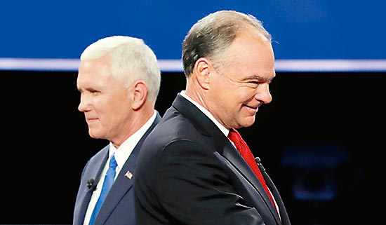 大公网10月6日讯(驻纽约记者黄晓敏)美东时间4日晚九时,美国副总统候选人进行了大选中唯一的一场电视辩论。不出所料,两位发挥出打手的作用,面对主持人提出的问题频频答非所问,不遗馀力地打击对方的总统候选人,同时为自己的搭档辩护。当天民调显示,共和党的彭斯以48%的支持率,小胜民主党的凯恩。