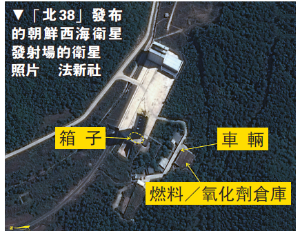 图:“北38”发布的朝鲜西海卫星发射场的卫星照片/法新社