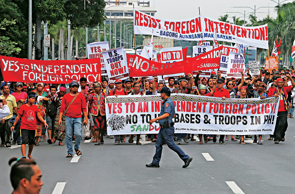 菲律宾民众19日在马尼拉举行反美示威