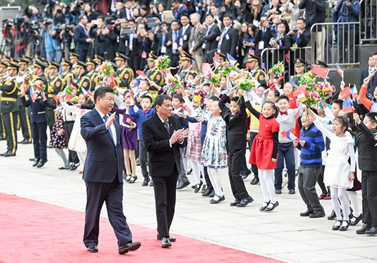 图:20日,中国国家主席习近平在北京人民大会堂同菲律宾总统杜特尔特举行会谈。会谈前,习近平在人民大会堂东门外广场为杜特尔特举行欢迎仪式/新华社