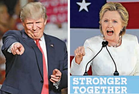 美国共和党总统候选人特朗普(左)、美国民主党总统候选人希拉里/美联社