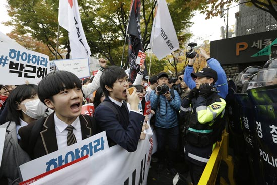 在涉嫌接受崔顺实女儿违规入学的梨花女大,40多名教授和2500多名在校生、毕业生,身穿象征梨大的绿色服装在校内游行,要求“解放梨花、铲除腐败”、“严惩崔顺实事件责任人”等。