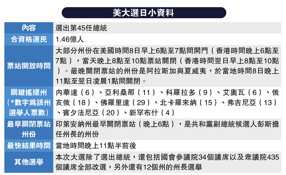 7日迎来选前24小时最终决战期,希拉里和特朗普都充分把握最后一天,在可能左右选情的若干关键摇摆州造势。