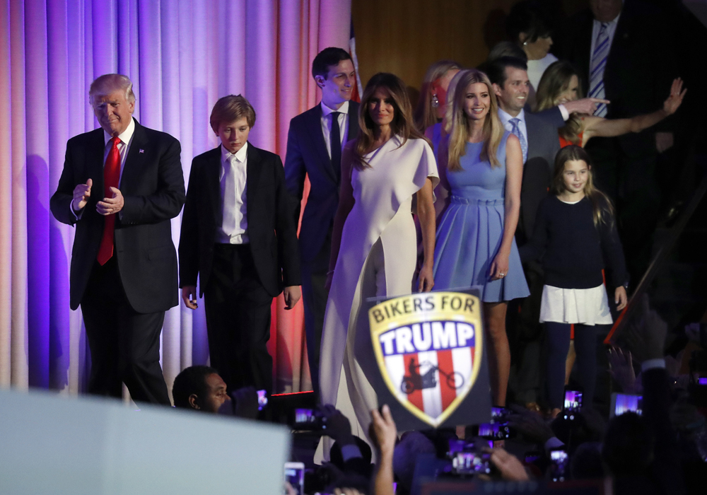 特朗普联同新出炉的“第一家庭”成员答谢支持者并发表胜利演说\法新社