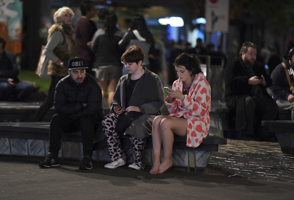 图:惠灵顿居民在震后露宿街头/美联社