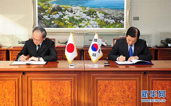 日本驻韩大使长岭安政与韩国国防部长韩民求出席了在首尔国防部举行的签署仪式。这是自1945年韩国从日本殖民统治中获得解放后,两国签订的首个军事协定。协定生效后,美国在东北亚地区推进的韩美日三方军事合作战略也有望进一步得到加强。