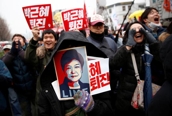 韩国民众26日在首尔示威,要求总统朴槿惠下台。路透社