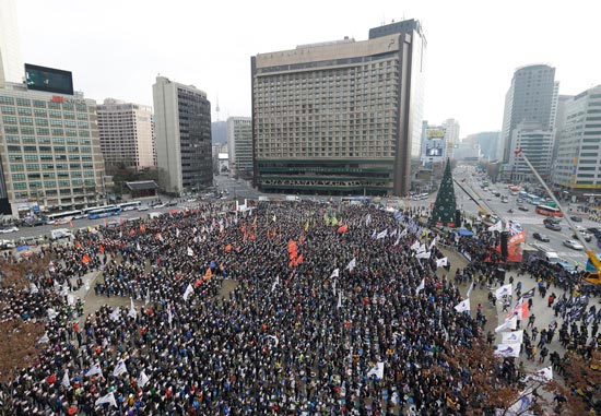 韩国首尔11月30日再现大型示威促总统朴槿惠下台。美联社