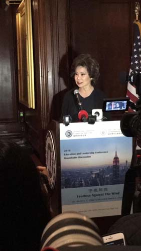 【大公报讯】驻纽约记者黄晓敏报道:被美国当选总统特朗普提名为下届运输部长的赵小兰女士,10日下午在纽约陪同其父赵锡成博士出席一场公开活动,全程谨言慎行,避谈政治。在国会召开任命听证会前,这是赵小兰出席的唯一一场公开活动。