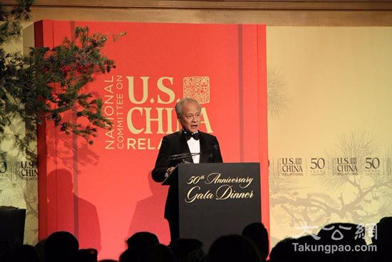 美中关系委员会成立于1966年,是一个私立、无党派的非营利性机构,旨在促进中美两国人民的相互了解与合作。过去五十年来,委员会对增进两国人民的友谊、推动两国关系的发展做出了卓越贡献。由于美国正处新旧领导人交接的时刻,美中关系正面临着一个新的考验,因此当晚活动备受瞩目。
