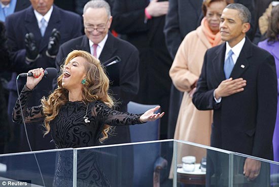 图:2013年1月歌手碧昂斯在现任美总统奥巴马的就职典礼上献唱/资料图片