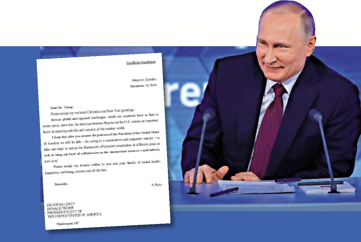 大公网12月25日讯 综合法新社、路透社报道:美国总统当选人特朗普23日公布一封来自俄罗斯总统普京的“友好来信”,普京在信中希望美俄两强关系解冻,寻求双边合作及将美俄关系提升至“新的层次”。