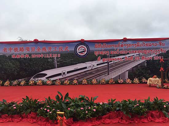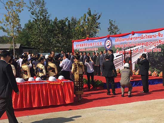 老挝前副总理宋沙瓦·凌沙瓦、中国驻老挝大使关华兵、老挝政府多个部门的主要负责人、中老铁路老挝沿线各省、市领导等出席开工仪式。