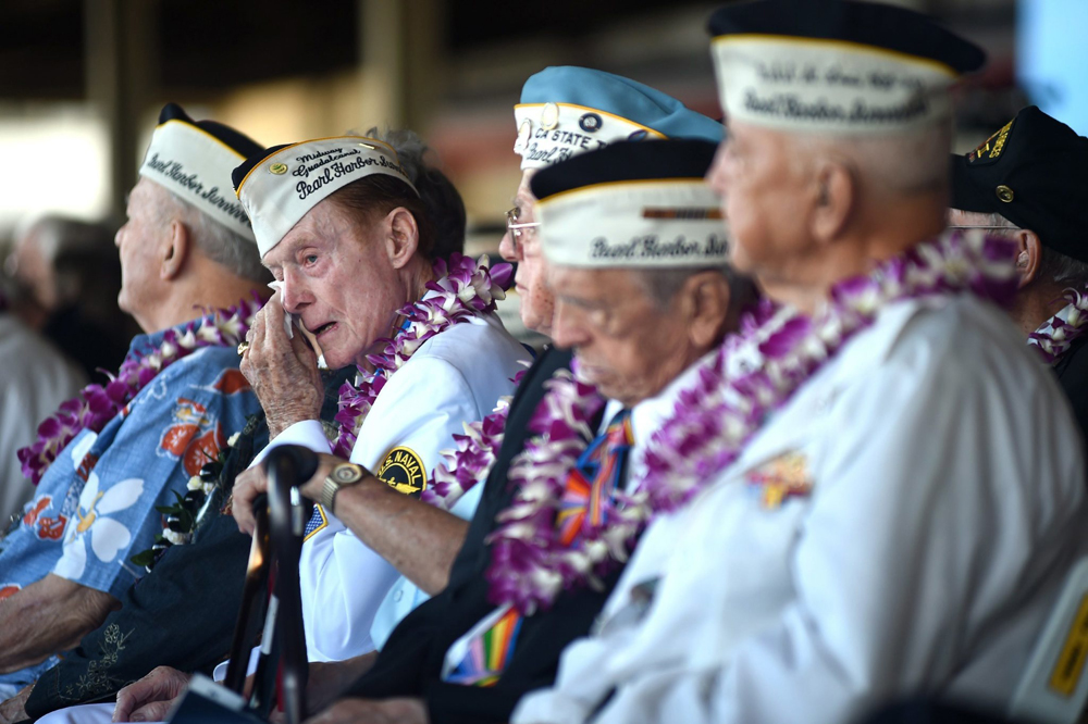 图:美国老兵孔泰(中)6日出席珍珠港事件75周年活动 网上图片