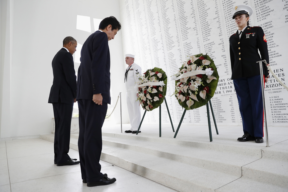 下月将卸任的奥巴马则称,“在友谊精神下”,他欢迎安倍到访珍珠港,“正如日本一直欢迎我(意指今年5月他到访广岛)”。奥巴马同时称许美日两国友谊“更加巩固”,“盼双方携手传达世界一个信息,也就是和平比战争赢得更多,和解比报复获得更多。”