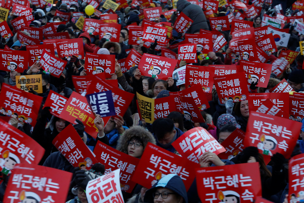 韩国总统朴槿惠的“闺密门”干政事件持续发酵,韩国民众举行多次烛光集会要求朴槿惠下台。12月9日,韩国国会最终以234票赞成、56票反对的压倒性优势通过朴槿惠总统弹劾案。石东演认为,此次弹劾案通过,是以民众力量实现的一次“名誉革命”。