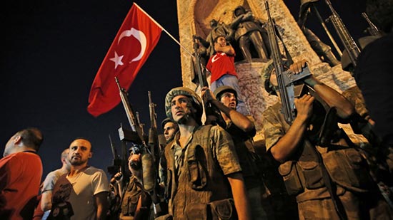 7月15日晚间,土耳其总参谋部部分军官发动军事政变,企图推翻埃尔多安政府,但这场政变不到24小时即流产。土耳其政府随后拘留或逮捕了超过1.3万人,对议会、总理府、军队、司法机构、教育机构的5万多人进行停职审查。土耳其指责美国涉嫌参与政变,指控居住在美国的土耳其传教士居伦为幕后操纵者,要求美国将其引渡遭拒,美西方指责土耳其人权状况,土与美西方关系陷入紧张。埃尔多安立即向普京靠拢,自年初因击落俄军机事件而紧张的土俄关系迅即好转。土耳其是北约重要成员和地区大国,土耳其外交逆转使得中东地区的地缘政治和大国竞争态势翻盘。