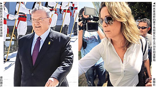 希腊驻巴西大使阿米里迪斯从周一起失踪。他的尸体于上月29日在里约郊区一辆烧毁的轿车里被发现。警方称,阿米里迪斯的巴西籍妻子弗朗索瓦丝·阿米里迪斯和情夫一起策划了这起谋杀。其情夫莫雷拉已经承认自己勒死了阿米里迪斯。目前,29岁的莫雷拉和40岁的弗朗索瓦丝,以及莫雷拉的一名堂兄已被拘捕并接受了问询。