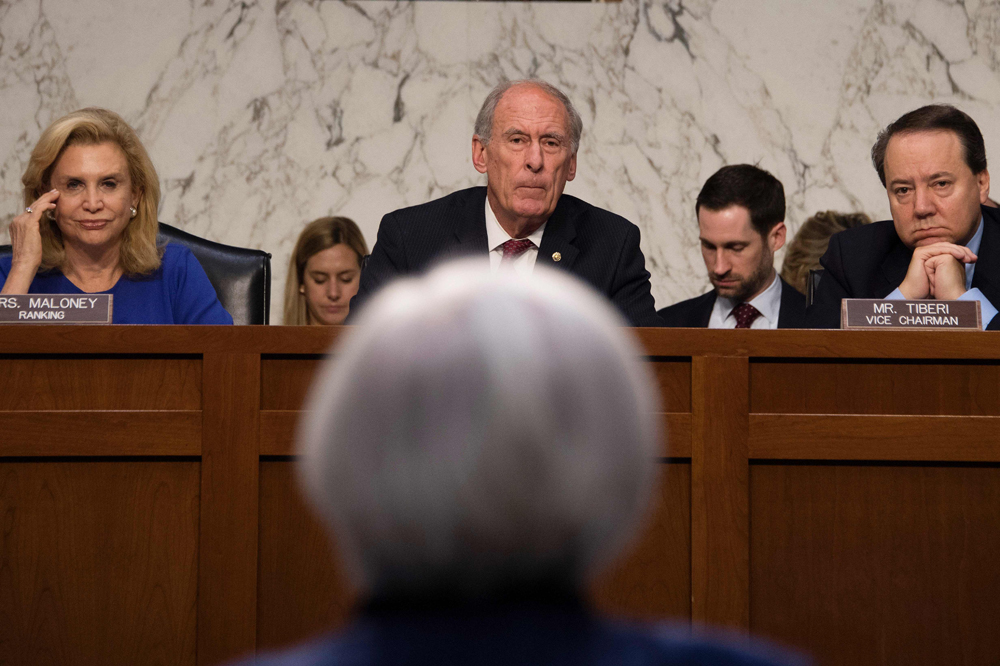 图:获特朗普提名出任国家情报总监的前参议员科茨(中)/法新社