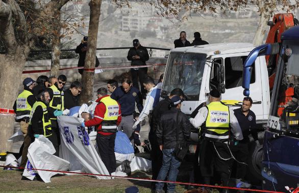 去年12月德国柏林市集发生严重货车恐袭事件之后,8日在以色列圣城耶路撒冷,货车恐袭悲剧再一次上演。当天下午,一辆货车于当地犹太社区阿蒙哈那兹夫的行人大道,撞向一班刚由巴士落车的以色列士兵。事发后警方封锁案发现场,用白布覆盖死者遗体。