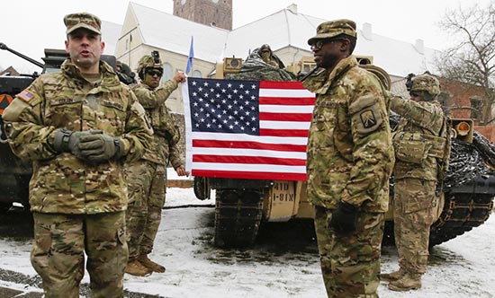 图:波兰14日举行欢迎美军士兵进驻仪式/美联社