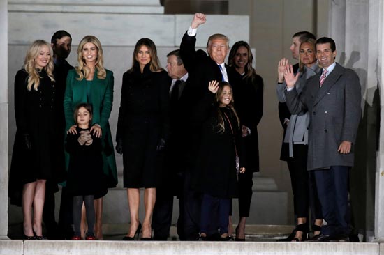 特朗普携全家19日在华盛顿林肯纪念堂前向民众致意。路透社