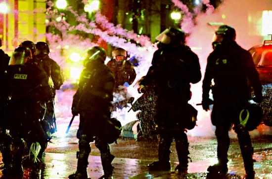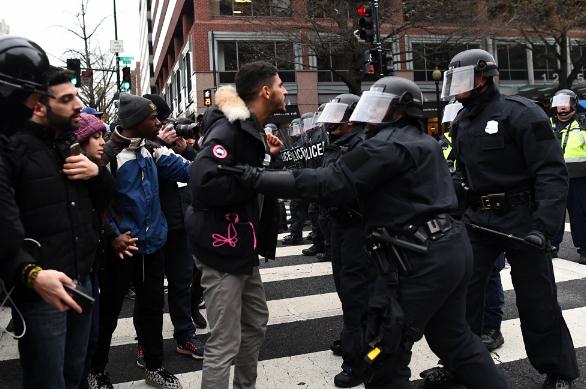 图:特朗普就职典礼进行当下,数条街外发生警民冲突 法新社