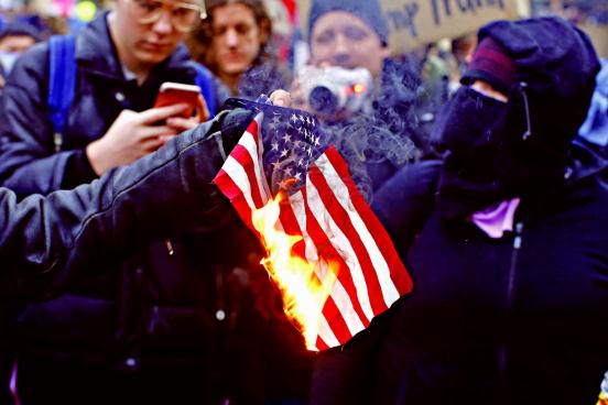 大公网1月22日讯 综合美联社、法新社、英国《每日邮报》报道:特朗普20日在首都华盛顿特区宣誓就职美国总统,就职演讲继续鼓吹民粹主义,多次重申“美国优先”。但就职当日整个美国再度呈现出了“分裂”状,就在几条街区外,示威人士也步步逼近,在华盛顿市中心砸破窗户、纵火,并与防暴警察混战,警察出动橡胶子弹和催泪弹控制场面,217人被捕。