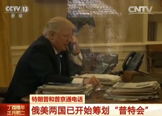 北京时间29日凌晨1点,俄罗斯总统普京与美国总统特朗普举行了电话会谈。图片来源央视新闻截图