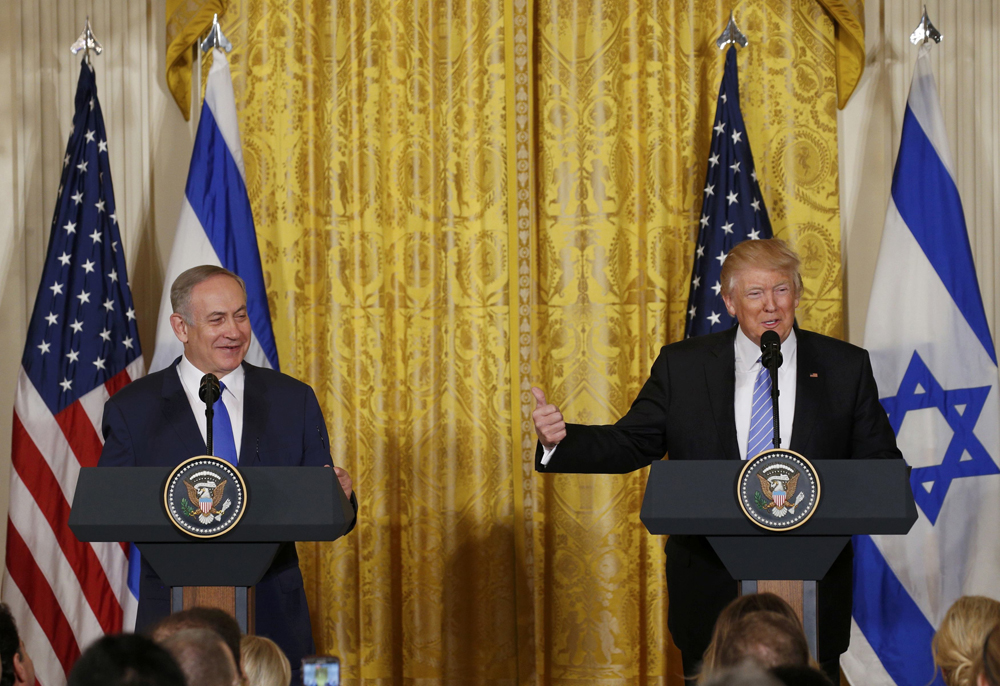特朗普当天在白宫会晤到访的内塔尼亚胡。这是特朗普胜出大选以来,美国和以色列领导人举行的第一次面对面会晤,以彰显盟友关系。