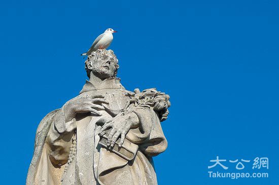 不过,查理大桥最举世无双的地方,莫过于桥上在一七〇〇年前后陆续安放了三十座跟宗教人物有关的雕塑,每座雕塑栩栩如生,令人看得迷醉,偶见飞鸟安顿其上,更添特殊的安宁感,抹去因严寒而生的寒冷感。