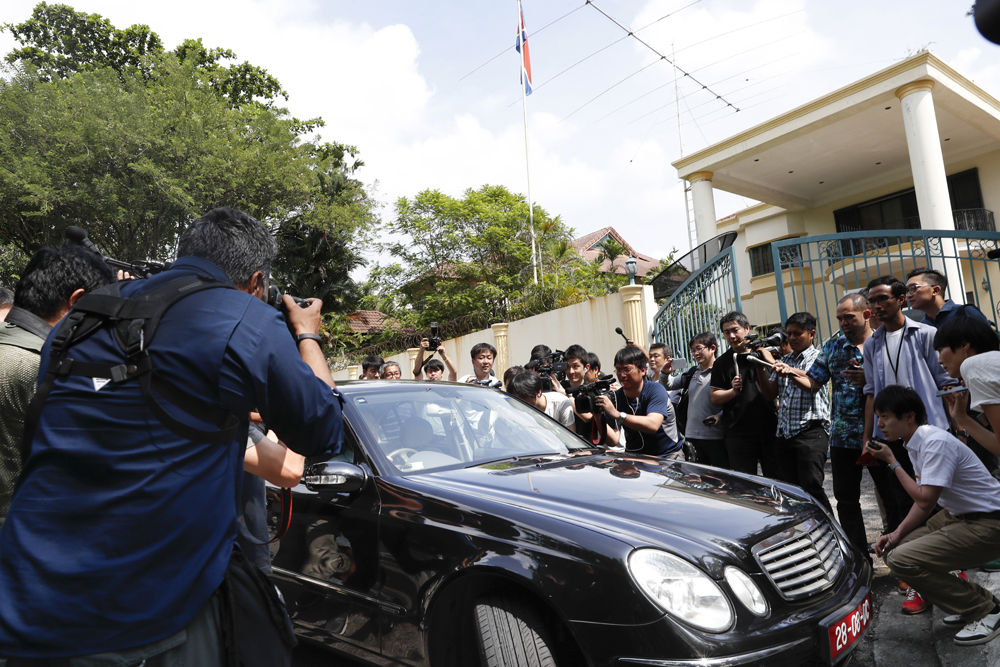 金正男在大马遇害进入第十天,为了获取第一手消息,媒体记者日夜守候在朝鲜大使馆、中央医院、武吉阿曼警察总部、吉隆坡第二国际机场等多个地方。对事件最为关注的韩国媒体,更不惜“搏命”用身体拦车,希望朝鲜驻马来西亚大使能回应一二。