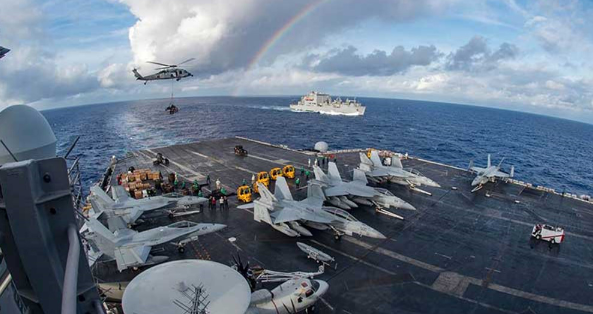 图:二月三日,美国“卡尔文森”号航母在太平洋演练/网络图片