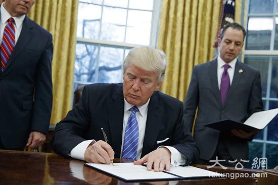 今年一月,美国总统特朗普签署行政命令退出跨太平洋伙伴关系协定(TPP) 。资料图片