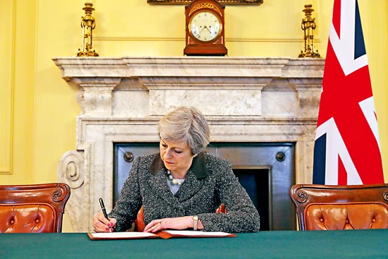 三月二十九日,英国首相文翠珊签署了将正式开启英国退出欧盟进程的信件。这封信件将由英国驻欧盟大使递交给欧盟理事会主席图斯克。英国“脱欧”程式正式启动。对文翠珊而言,这是一个相当棘手但又必须完成的“离婚”游戏。过程相当痛苦但不能有丝毫的退缩。按照欧盟相关法律规定,文翠珊一旦启动《里斯本条约》第五十条,就意味着启动“脱欧”程式,英国应在二〇一九年初完成与欧盟其他二十七个成员国的谈判;如需延长谈判时间,必须得到所有成员国的一致同意。
