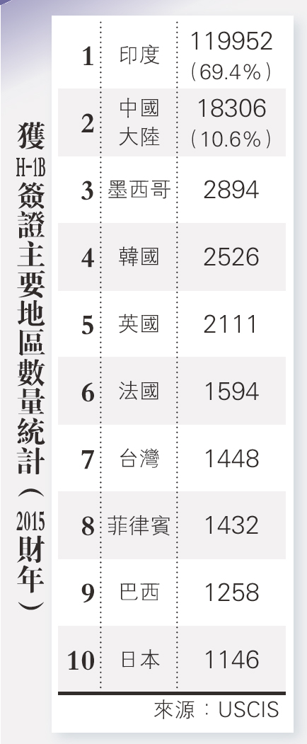 美国劳工部2015财年批准的H-1B签证申请中,电脑程式师约占12%,其中41%属于最低工资水平的岗位,收入中位数为7.9万美元。