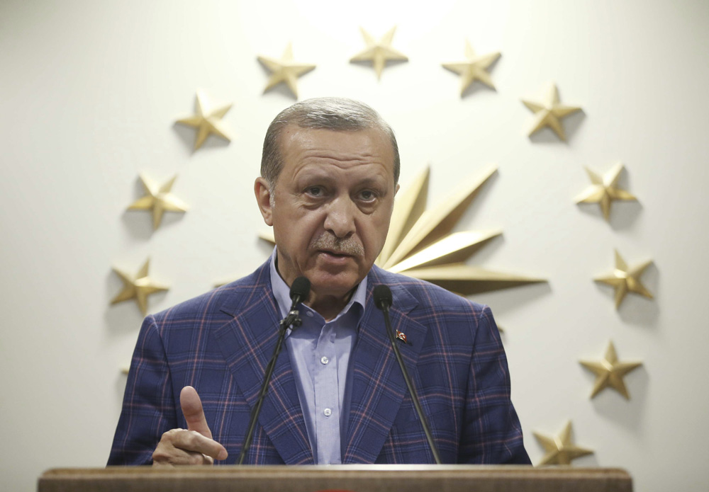 图:土耳其总统埃尔多安就公投结果发表讲话/美联社