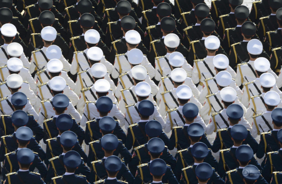 中国人民解放军三军仪仗队方阵行进在阅兵式上/图片源自新华社
