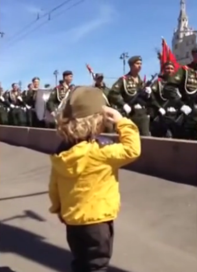2015年俄罗斯红场阅兵,四岁小孩对彩排队伍敬礼/历史资料视频截图