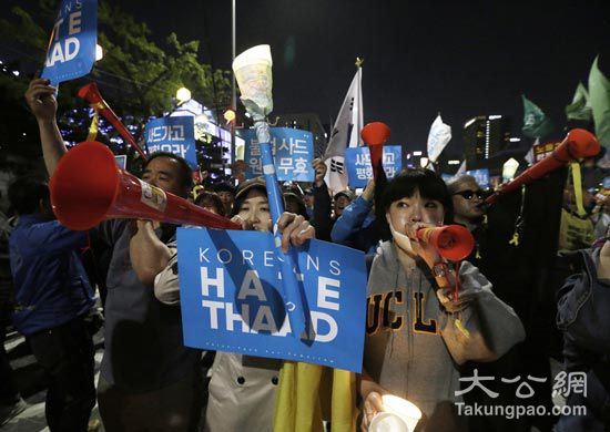 韩国反“萨德”人士4月在首尔的美国使馆附近示威。