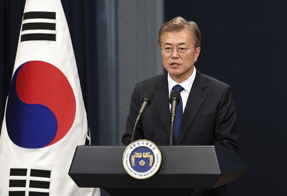图:韩国新总统文在寅10日在青瓦台讲话\美联社