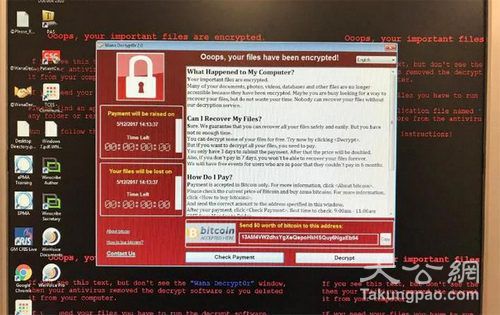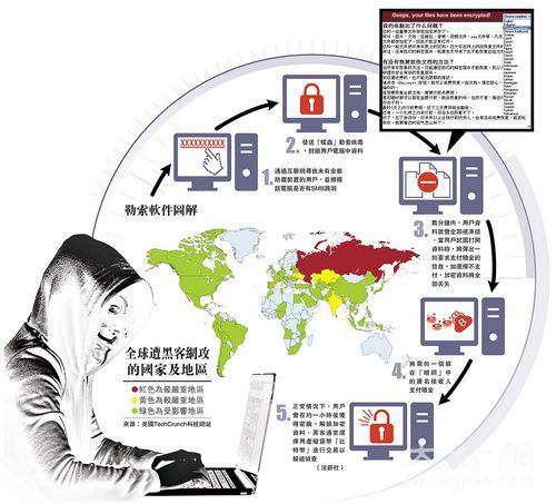大公网5月14日讯 综合英国《每日邮报》、法新社、路透社报道:全球99个国家或地区的逾7.5万台电脑遭受“蠕虫”式勒索病毒感染,受害者包括欧美和亚洲多国。业界表示,这是有纪录以来最严重的黑客攻击。黑客利用美国国家安全局(NSA)网络武器库中泄漏的黑客工具,製成勒索软件。目前受灾最严重的是俄罗斯,虽然本港仅一名市民受到黑客攻击,政府、医院等其他部门暂未被波及,但电脑保安事故协调中心13日已就加密勒索软件,发出“极度危险”保安公告。