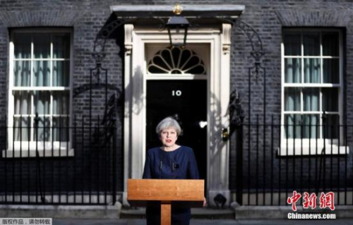 当地时间4月18日,英国首相特蕾莎·梅在首相官邸前发表声明,宣布将在6月8日提前大选。