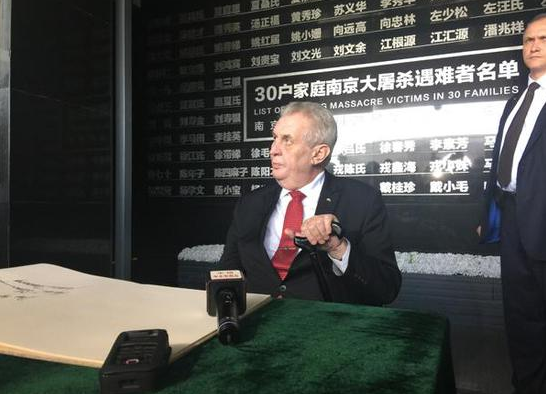来华出席“一带一路”国际合作高峰论坛的捷克总统泽曼,今天参观了侵华日军南京大屠杀遇难同胞纪念馆。