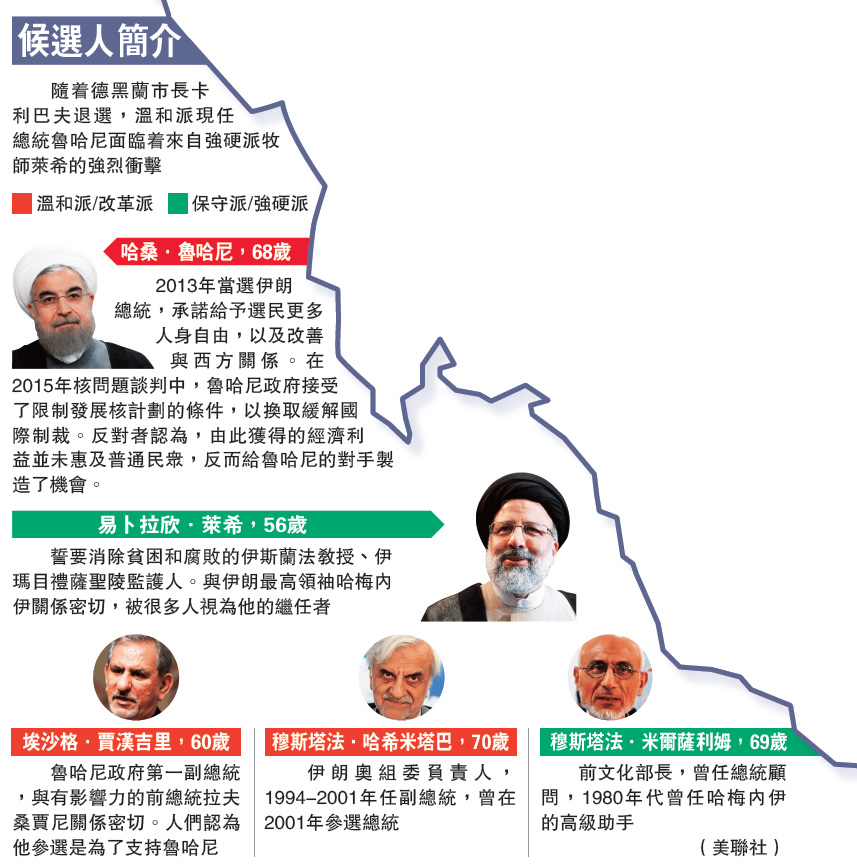 伊朗总统大选将于5月19日进行,获逾半数选票的候选人将直接当选,否则得票前两位的候选人将进入5月26日的第二轮角逐。