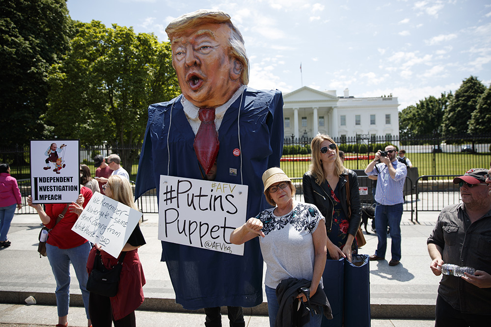 图:民众10日在白宫外抗议特朗普炒掉科米\美联社