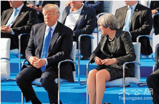 图:英国首相文翠珊在25日的北约峰会上怒视美国总统特朗普 路透社