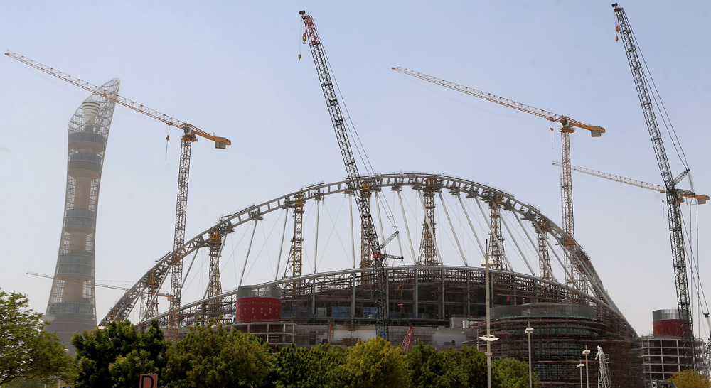 图:2022年在卡塔尔举办的足球世界杯场馆正在建设\法新社