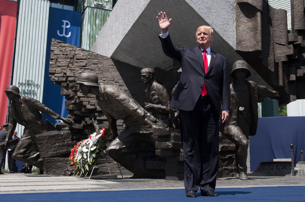 7日,特朗普在华沙克拉辛斯基广场,对高声欢呼的大批群众发表演说,其讲台就设在纪念1944年华沙起义的铜质纪念碑下,为了纪念几十万反抗纳粹占领军的波兰士兵和平民。